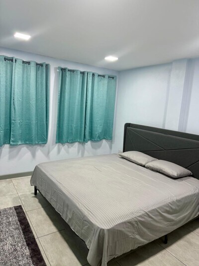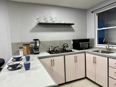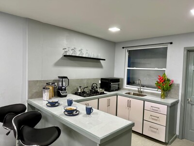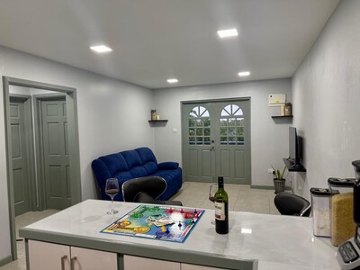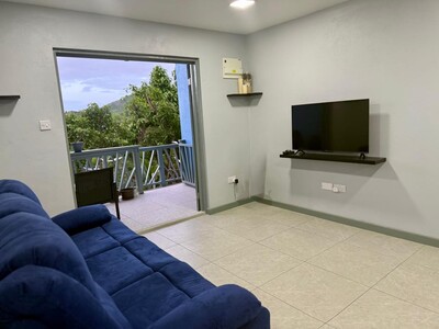 This is a 2 bedroom 1 bathroom apartment for rent in Cedar Heights, Beausejour, St Lucia. It is a modern, fully equipped, self contained downstairs flat with furnishings. It is a quiet location with a lush view close to amenities.
